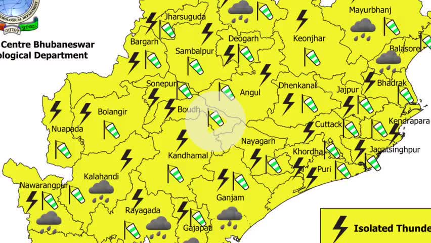 ବଲାଙ୍ଗୀର: ବିଜୁଳି ଘଡ଼ଘଡ଼ି ସହ ଅନୁଭୂତ ହେବ ଗରମ ଓ ଗୁଳୁଗୁଳି, ଜିଲ୍ଲାକୁ ୟେଲୋ ୱାର୍ଣ୍ଣିଂ ଜାରି କଲା ଜିଲ୍ଲା ପାଣି ପାଗ ବିଭାଗ।