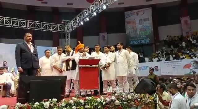 युवा कांग्रेस द्वारा इनडोर स्टेडियम में भारत जोड़ो युवा संकल्प समारोह में राष्ट्रीय अध्यक्ष श्रीनिवास बीवी संबोधित करते हुए
