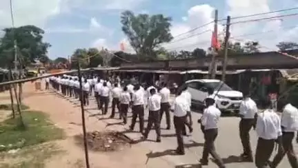 रायडीह: राष्ट्रीय स्वयं सेवक संघ रायडीह खंड के द्वारा संघ शताब्दी वर्ष के अंतर्गत पथ संचलन एवं शस्त्र पूजन संपन्न