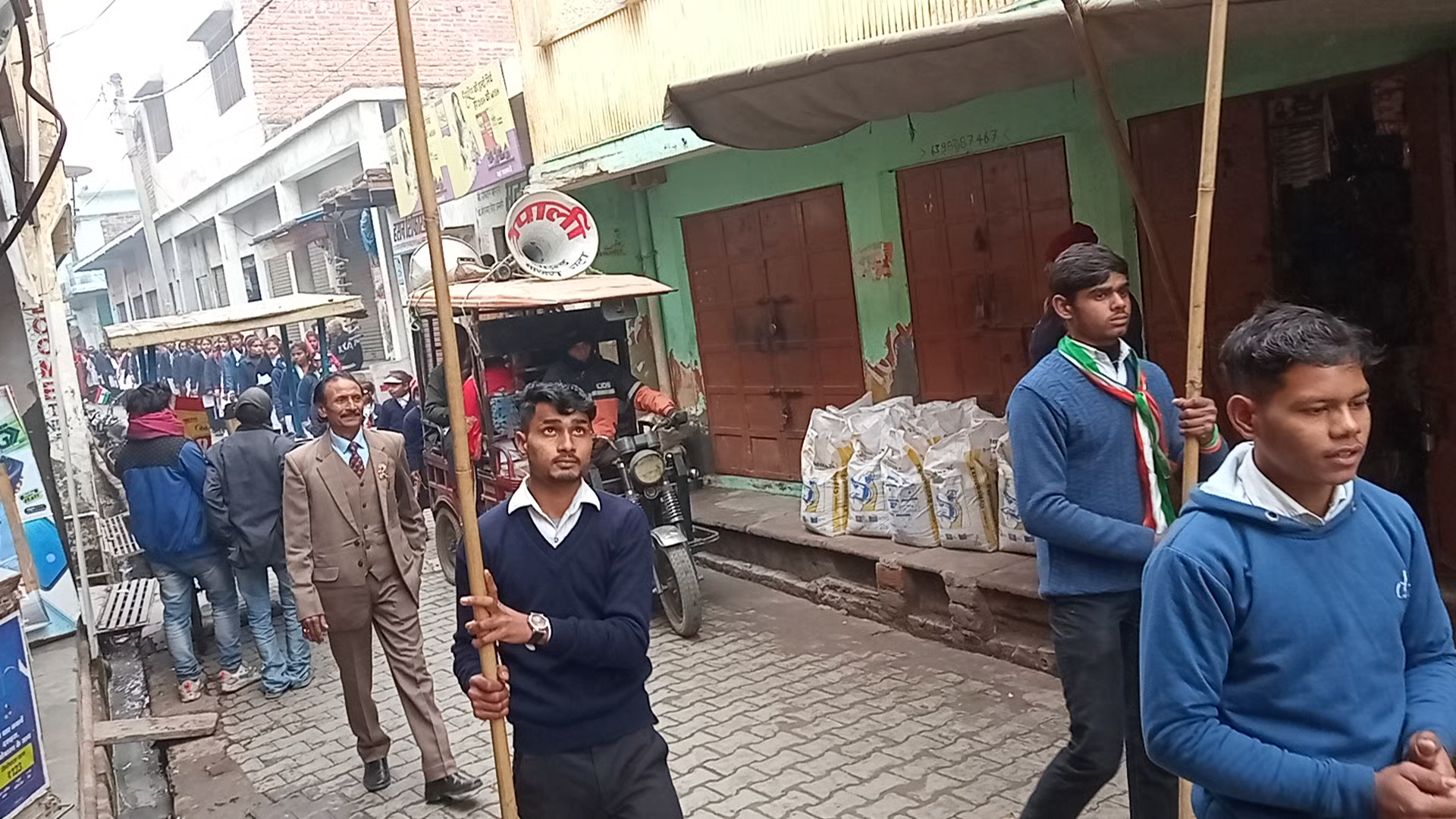 मारहरा मे गणतंत्र दिवस के मौके पर इंटर कॉलेज के छात्रों ने निकाली रैली