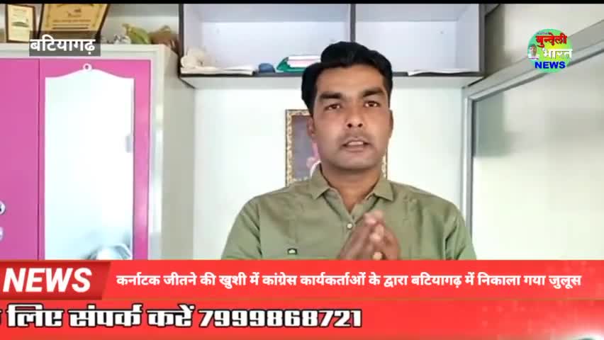 बटियागढ़: कर्नाटक जीतने पर बटियागढ़ में कांग्रेसियों के द्वारा निकाला गया जुलूस