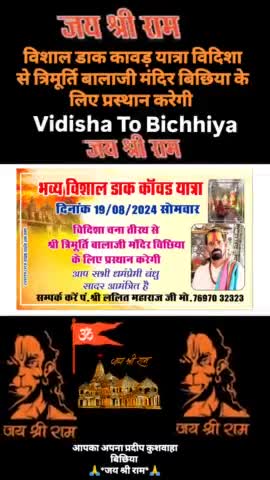 भव्य विशाल डाक कॉवड यात्रा दिनांक 19/08/2024 सोमवार को विदिशा से त्रिमूर्ति बालाजी मंदिर बिछिया के लिए प्रस्थान करेगी