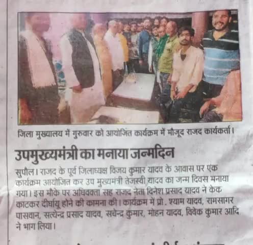 बिहार सरकार के उप मुख्यमंत्री एवम हमलोग के नेता आदरणीय तेजस्वी यादव भैया जी का जन्मदिन अपने आवास पर धूम धाम से मनाया😎🙏