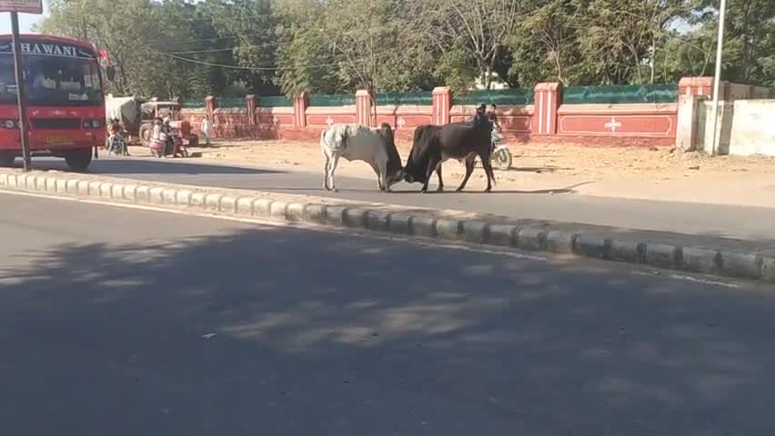 कलेक्ट्री सर्किल के पास में दो सांडों में आमने-सामने लड़ाई churu 😱😱