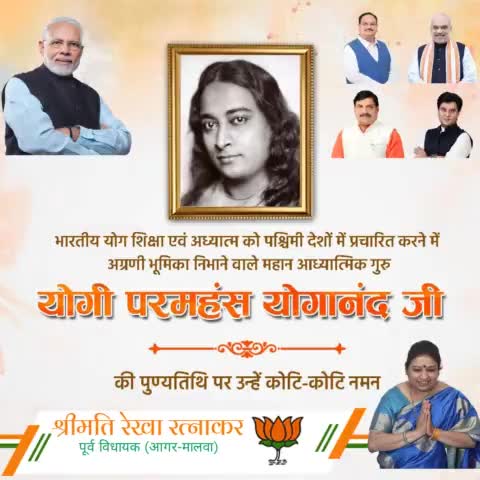 भारतीय योग शिक्षा एवं अध्यात्म को पश्चिमी देशों में प्रचारित करने में अग्रणी भूमिका निभाने वाले महान आध्यात्मिक गुरू "योगी परमहंस योगानंद जी" की पुण्यतिथि पर उन्हें कोटि कोटि नमन. . .