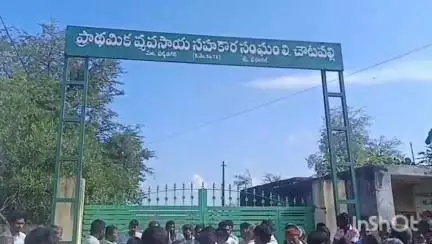 పర్వతగిరి: చౌటపల్లిలోని ప్రాథమిక వ్యవసాయ సహకార సంఘం ముందు రైతులు యూరియా కోసం ఆందోళనకు దిగారు