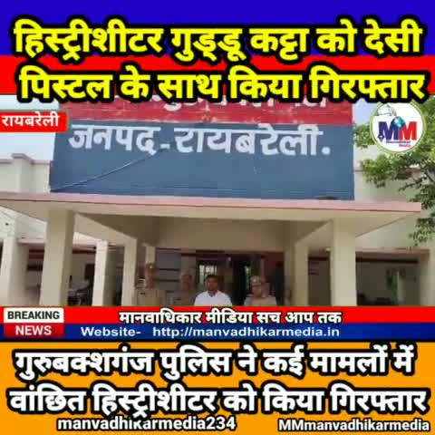 रायबरेली!तेजतर्रार गुरुबख्शगंज थानाप्रभारी प्रवीण गौतम ने हिस्ट्री सीटर गुड्डू कट्टा को देसी पिस्टल के साथ कियागिरफ्तार