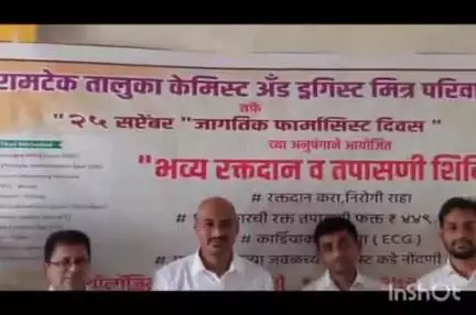 रामटेक तालुका केमिस्ट अँड ड्रगीस्ट मित्रपरिवार रामटेक तर्फे जागतिक फार्मसीस्ट दिवसाचे औचित्य साधत गुरुवार दिनांक 25 सप्टेंबरला सकाळी दहा ते दुपारी तीन वाजता पर्यंत किंमतकर हॉस्पिटल,गांधी चौक रामटेक येथे भव्य रक्तदान व तपासणी शिबिराचे आयोजन करण्यात आले होते. प्रियेश महाजन यांच्या हस्ते शिबिराचे उद्घाटन करण्यात आले. यात 23 इसीजी, 29 व्यक्तींनी रक्तदान व 42 लोकांनी आरोग्य चाचण्या केल्या तर 50 लोकांनी अवयव दानाचे नामांकन केले.