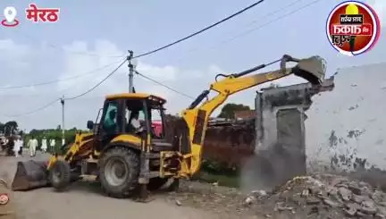 #MEERUT पूर्व विधायक #संगीत_सोम की चेतावनी का हुआ असर, आरोपियों के घर पर चला #बुलडोजर एक्शन
