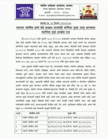 पालघर पोलीस ठाणे येथील घरफोडीच्या गुन्ह्याची उकल करण्यात स्थानिक गुन्हे शाखेस यश.