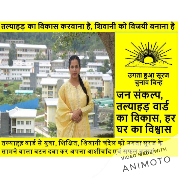 तल्याहड़ वार्ड से युवा, शिक्षित, शिवानी चंदेल को उगता सूरज के सामने वाला बटन दबा कर अपना आशीर्वाद एवं सफल बनाएं lll #शिवानी #तल्याहड़ #युवा शक्ति राष्ट्र निर्माता