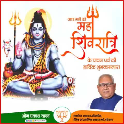 महाशिवरात्रि के पावन पर्व की सभी श्रद्धालुओं को हार्दिक बधाई व शुभकामनाएं।देवाधिदेव महादेव से प्रार्थना है कि यह महापर्व सभी के जीवन में सुख, समृद्धि और आरोग्यता का संचार करे। बाबा भोलेनाथ की कृपा समस्त प्रदेशवासियों पर बनी रहे।