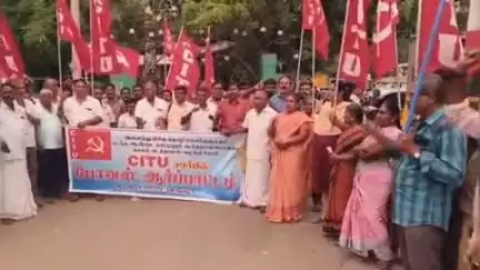 திருப்பூர் தெற்கு: திருப்பூர் குமரன் நினைவகம் முன்பாக சிஐடியு தொழிற்சங்கம் சார்பில் போனஸ் கேட்டு ஆர்ப்பாட்டம் நடைபெற்றது