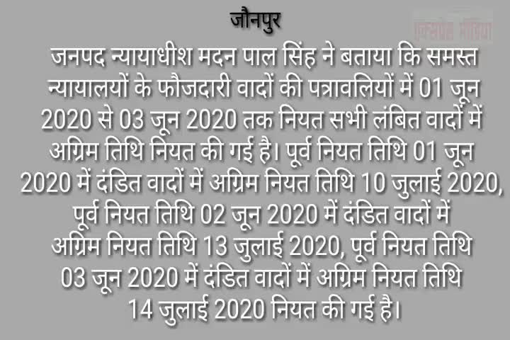 जौनपुर: एक जून से तीन जून तक के सभी लंबित वादों में नियत की गई अग्रिम तिथि: जिला जज #district judge #district court