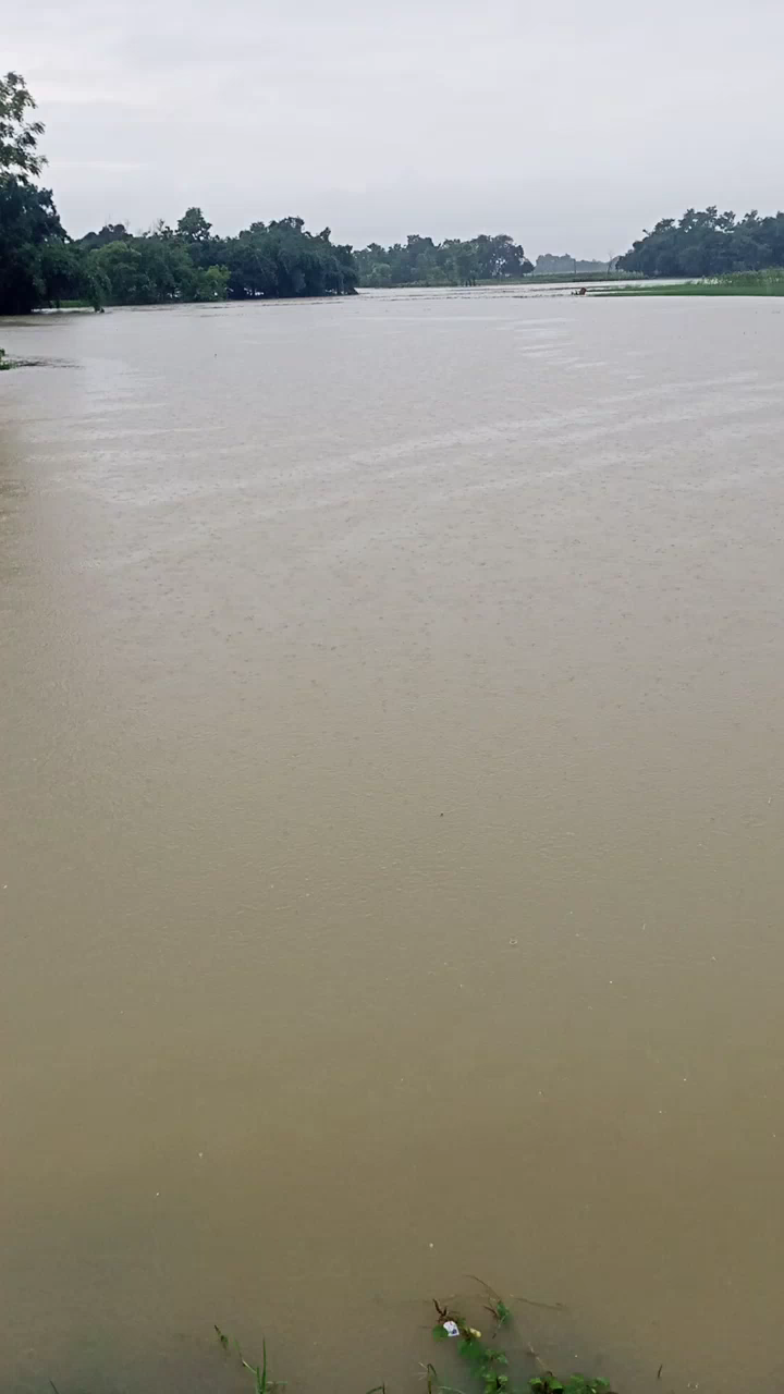 तुरकौलिया: #भारी बारिश से बाढ़ जैसा दृश्य छौड़ादनों प्रखंड के भेेलवा पंचायत का रघुनाथपुर गांव