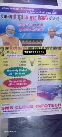 प्रधानमंत्री सुर्य घर मुफ्त बिजली योजना अपनाओ अपना घर का बिजली बिल जिरो कराओ संपर्क नंबर 7870339309