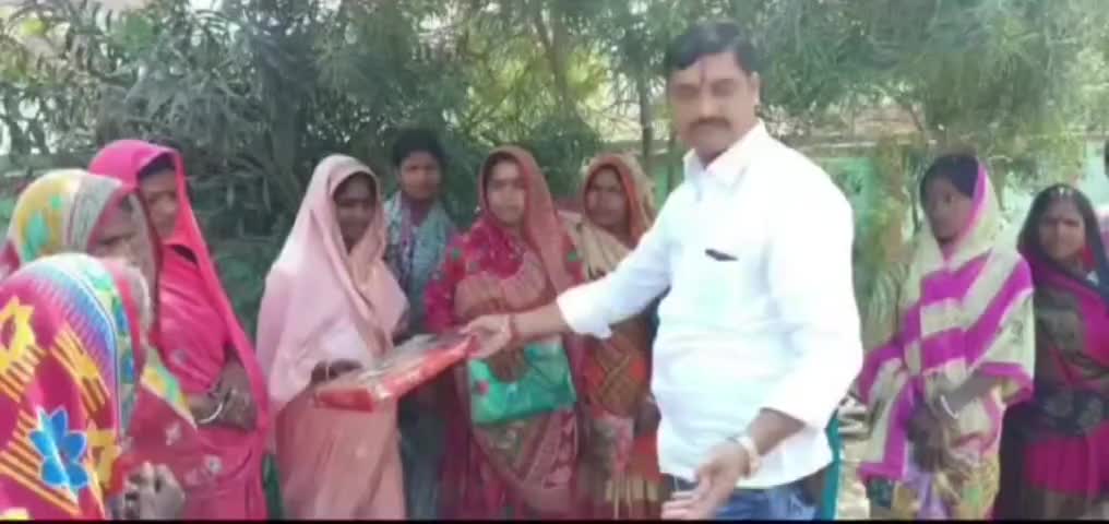 महिला दिवस के मौके पर मै #श्री_प्रभात_सिंह_चौहान हाजीपुर शहर के हत्सारगंज मे खेतिहर मजदूर महिलाओ को साड़ी देकर समान करते