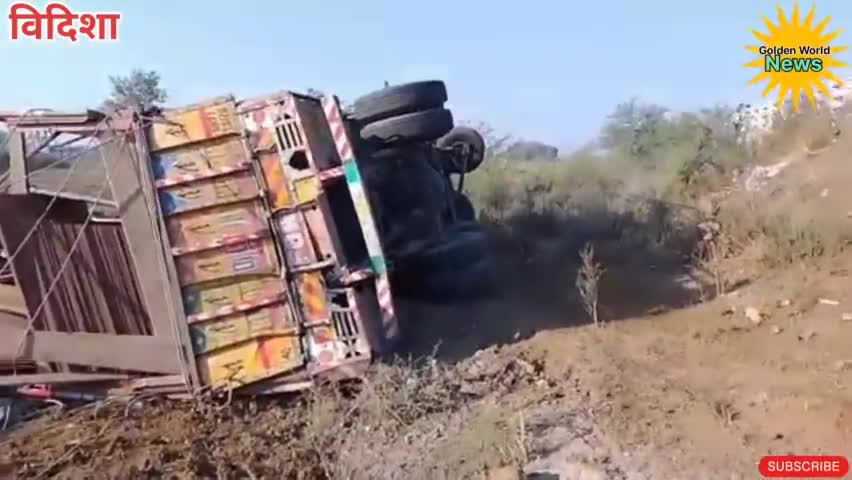 विदिशा नगर: विदिशा के हाइवे के पास ग्राम सुआखेड़ी के समीप एक ट्रक पलट गया लोगों ने की मदद।#vidisha @goldenworldnews01
