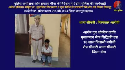 अवैध हथियार सहित 01 मुलजिम थाना #सीकरी द्वारा गिरफतार व एक विधि से संघर्षरत किशोर को किया निरूद्ध