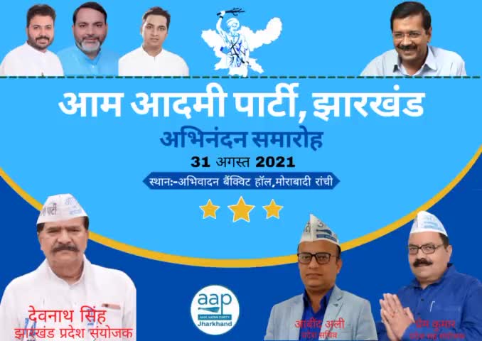 आम आदमी पार्टी झारखंड प्रदेश के अभिनंदन समारोह एवं कार्यकर्ता सम्मेलन में आप सभी कार्यकर्ता सादर आमंत्रित है। दिनांक : 31August,2021 स्थान : मोराबादी,रांची( झारखण्ड)