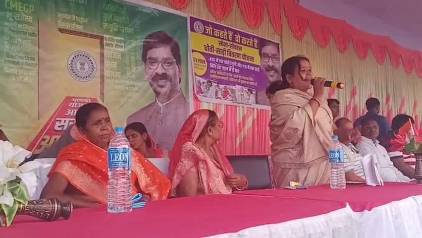 सरकार आपके द्वार कार्यक्रम पोड़ैयाहाट के बक्सरा पंचायत मैं अपनी बातों को रखते समाजसेवी अर्चना देवी