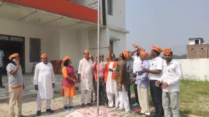 भारतीय जनता पार्टी के स्थापना दिवस पर भारतीय जनता पार्टी कार्यालय में फहराया गया भारतीय जनता पार्टी का झंडा।