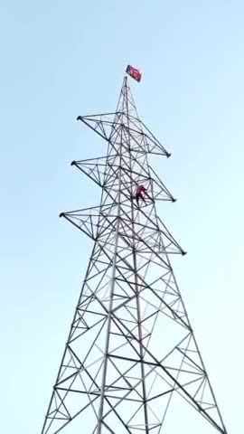 400मीटर ऊपर बिजली के खंबे पे चढ़कर लगाया समाजवादी पार्टी का झंडा सपा Fan है bhai