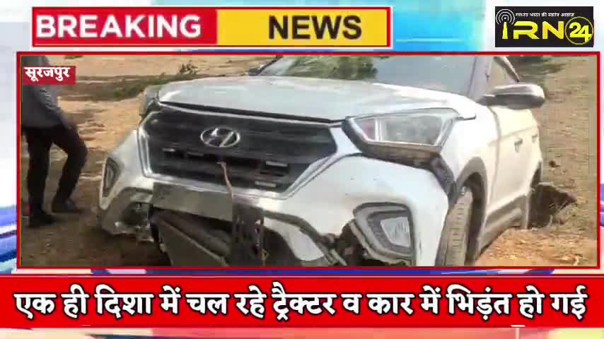 सूरजपुर केतका मुख्य मार्ग पर पासिंग नाला के समीप एक ही दिशा में चल रहे ट्रैक्टर व कार में हुई भिड़ंत