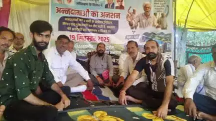 खातेगांव: खातेगांव के किसान कलवार पहुंचे, अनशन पर बैठे किसानों को दिया समर्थन