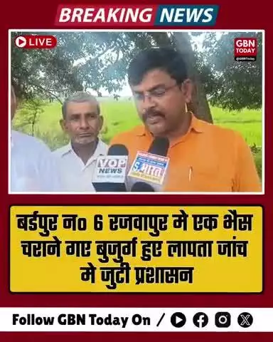 📍 बर्डपुर नं. 6 रजवापुर में लापता हुए बुजुर्ग भैंस चराने गए बुजुर्ग का अब तक कोई सुराग नहीं, परिजन परेशान, प्रशासन ने शुरू की तलाश। स्थानीय पुलिस मौके पर जांच में जुटी हुई है। #gbntoday #रजवापुर #लापता_बुजुर्ग #उत्तरप्रदेश #UPNews #MissingPerson #LocalNews #PoliceInvestigation #BreakingNews #जनपद_खबर #बस्ती_समाचार