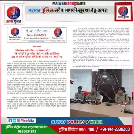 कांस्टेबल भर्ती परीक्षा 2025 'कॉन्स्टेबल भर्ती परीक्षा 14 सितंबर को।' 'दो पारियों ने 38 परीक्षा केंद्रों पर होगी आयोजित।' '650 से अधिक पुलिस कर्मियों को लगाया गया डयूटी में।' #NoShortcuts #RajasthanPolice