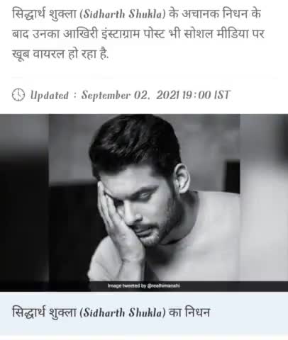 सिद्धार्थ शुक्ला (Sidharth Shukla) के अचानक निधन के बाद उनका आखिरी इंस्टाग्राम पोस्ट भी सोशल मीडिया पर खूब वायरल हो रहा