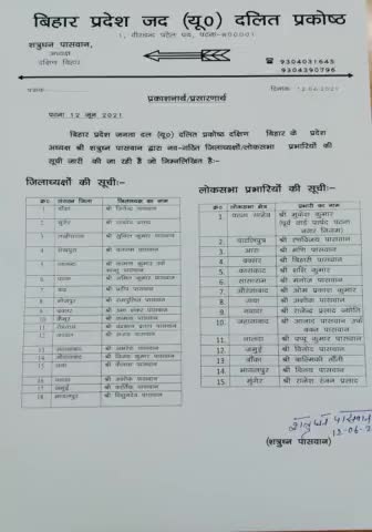 आज मैंने सभी नव-गठित जिलाध्यक्षों/लोकसभा प्रभारीयों का सूची जारी की.....