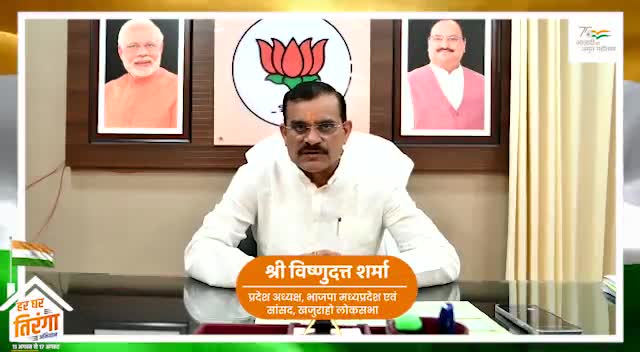 भाजपा प्रदेश अध्यक्ष एवं सांसद श्री विष्णुदत्त शर्मा की प्रदेश की जनता एवं कार्यकर्ताओं से #HarGharTiranga अभियान के तहत 13 से 15 अगस्त के बीच अपने घरों पर तिरंगा लगाने की अपील।#AmritMahotsav