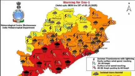 ବୌଦ୍ଧ ସଦର: ଆସନ୍ତା କାଲୀ ସକାଳ ୮.୩୦ପର୍ଯ୍ୟନ୍ତ ପ୍ରବଳ ବର୍ଷା,ପବନ ସହିତ ବିଜୁଳି ଓ଼ ଘଡ଼ଘଡ଼ି ନେଇ ବୌଦ୍ଧ ଜିଲ୍ଳାକୁ ଅରେଞ୍ଜ ୱାର୍ଣ୍ଣି ଜାରି