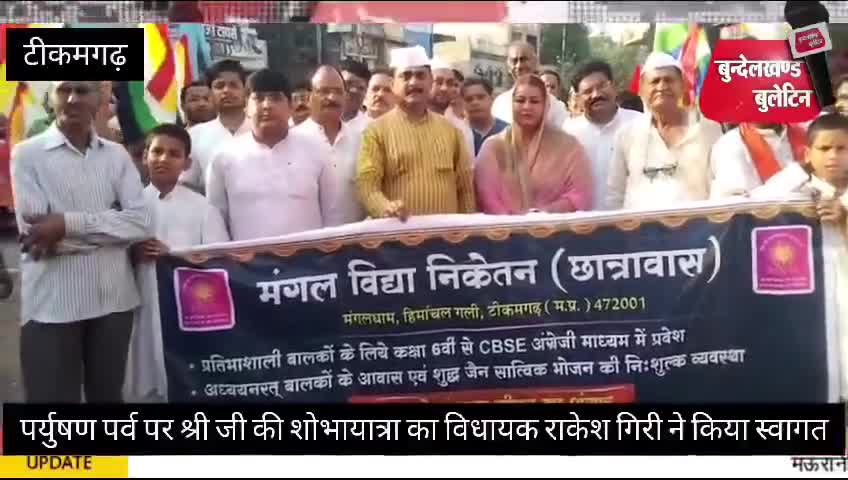पर्युषण महापर्व के समापन अवसर पर विधायक राकेश गिरी ने भगवान श्रीजी की शोभा यात्रा का पर पुष्पवर्षा कर स्वागत किया।