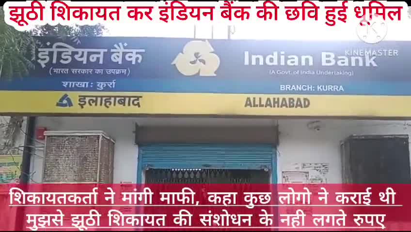 झूठी शिकायत कर इंडियन बैंक कुर्रा की छवि हुई धूमिल, मांगी माफी भविष्य में नही होगी इस तरह की गलती
