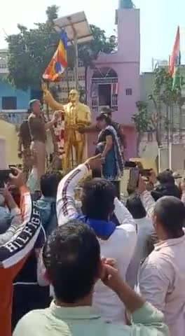 थाना विजय नगर प्रभारी योगेंद्र मलिक ने भीमराव अंबेडकर की नई मूर्ति लगवाई असमाजिक तत्वों ने तोड दी थी