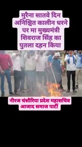 जय भीम अनिश्चित कालीन धरने पर आज सातवें दिन मा. मुख्यमंत्री शिवराज सिंह चौहान जी का पुतला दहन किया गया