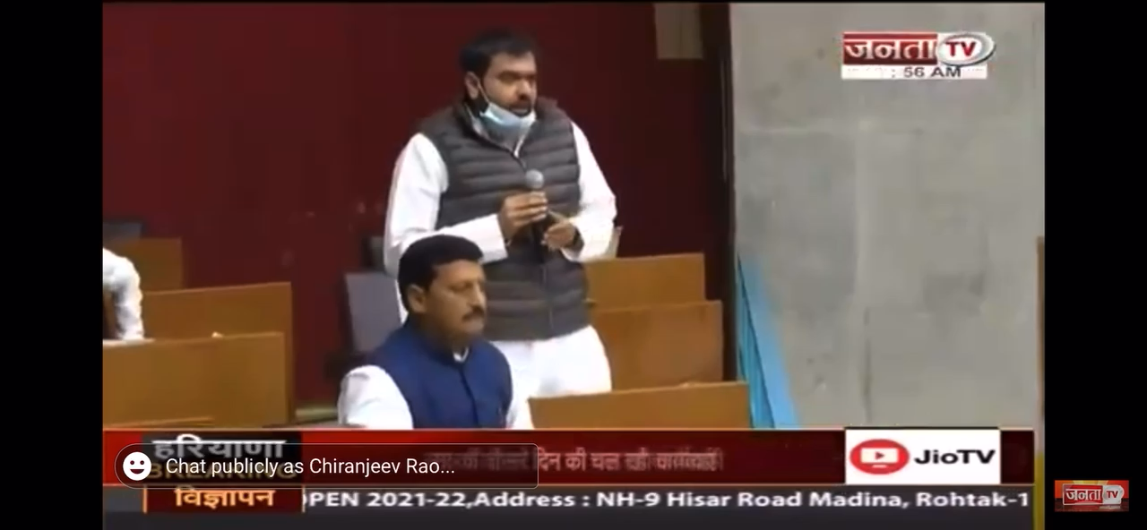 हरियाणा विधानसभा में रेवाड़ी को नगर निगम बनाने की माँग उठाई।