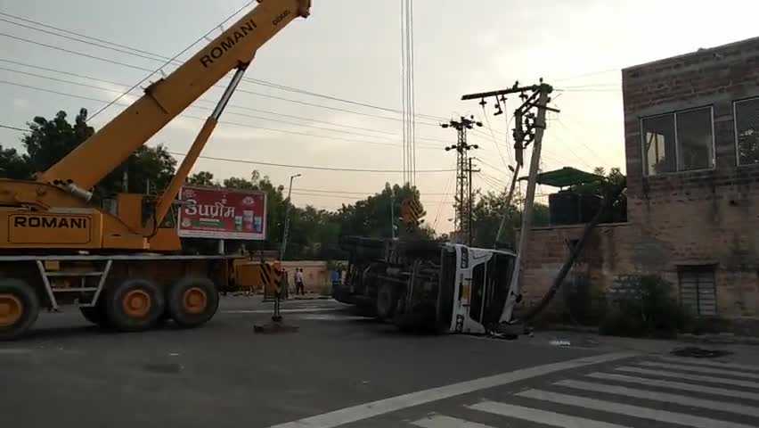 नागौर: कलेक्ट्रेट चौराया पर ज्वलनशील पदार्थ से भरा टैंकर पलटा जिससे कोई जनहानि नहीं हुई बिजली के विद्युत पोल गिरे Gaye