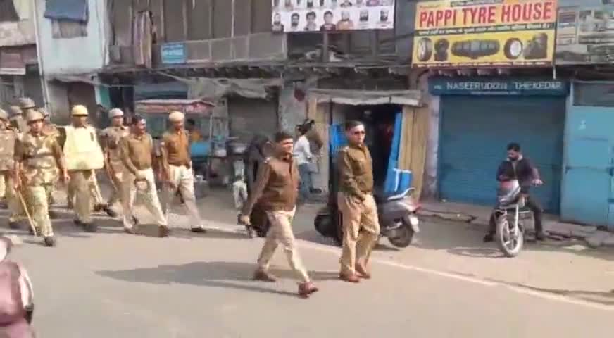 गढ़मुक्तेश्वर: गढ़ क्षेत्र में विधानसभा चुनाव को लेकर अर्धसैनिक बल एवं पुलिस फोर्स ने सड़कों पर निकाला फ्लैग मार्च