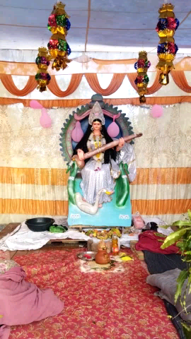 बलिया: जिगनी खास चौहान बस्ती मे मा सरस्वती का पंडाल सज धर के बनाया गया है#