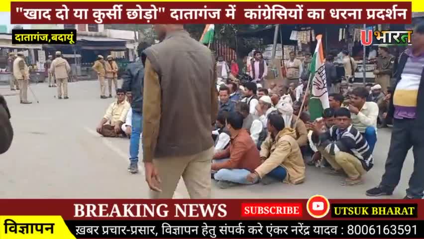 खाद दो या गद्दी छोड़ो : दातागंज में कांग्रेसियों का धरना