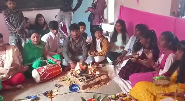 सरस्वती शिशु विद्या मंदिर, कदमा, रामनगर हज़ारीबाग़ में सरस्वती पूजा का हवन करते भैया बहने, खिचड़ी का प्रसाद वितरित किया गया
