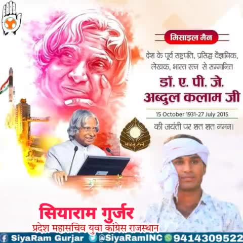 देश के पूर्व राष्ट्रपति, महान वैज्ञानिक एवं भारत रत्न से सम्मानित डॉ. ए.पी.जे. अब्दुल कलाम जी की जयंती पर सादर नमन। उनके बहुमूल्य विचार, आदर्श व सिद्धांत हमेशा हम सभी के लिए प्रेरणादायी रहेंगे।
