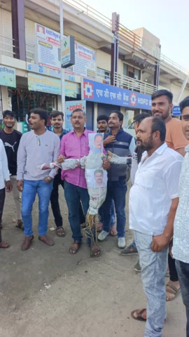बैतूल नगर: भैंसदेही #200 करोड़ गबन धीरज साहू का भैंसदेही तहसील में भारतीय जनता पार्टी के कार्यकर्ताओं ने किया पुतला दहन