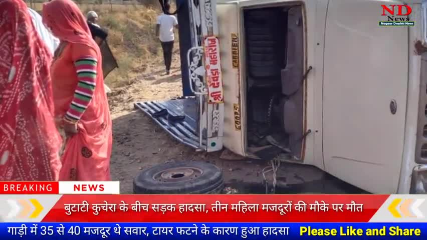 नागौर: बुटाटी कुचेरा के बीच सड़क हादसा ओवरलोड पिकअप का टायर फटने से पलट गई गाड़ी, खबर लखन भाटी
