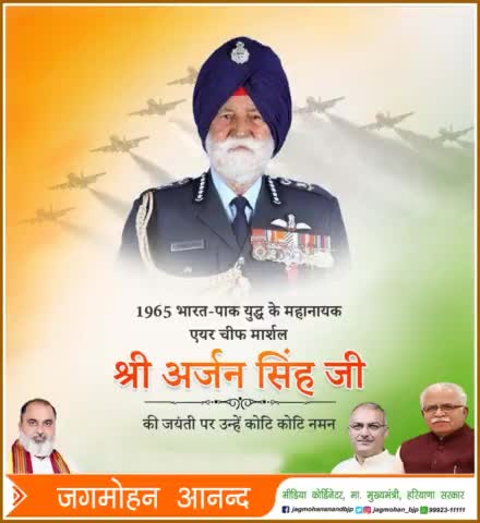 द्वितीय विश्व युद्ध के नायक एवं 1965 भारत-पाक युद्ध में पाकिस्तानी टैंकों को तहस-नहस कर देने वाले भारतीय वायु सेना के मार्शल अर्जन सिंह जी की जयंती पर उन्हें शत्-शत् नमन। #MarshalArjanSingh