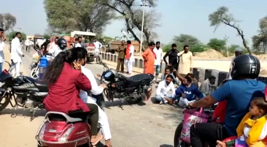 घड़साना: ग्राम पंचायत 6DD में ग्रामीणों ने सड़क बनवाने की मांग को लेकर रास्ते को किया बंद
